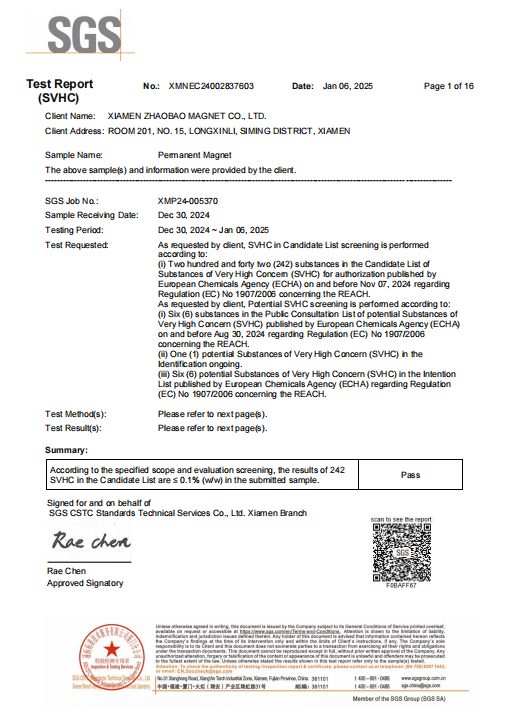 Qualidade e conformidade não são negociáveis para nossas parcerias B2B. Nossos produtos magnéticos obtiveram uma gama completa de certificações oficiais, incluindo IATF16949 (padrão da indústria automotiva), ISO9001 (sistema de gestão de qualidade), ISO14001 (sistema de gestão ambiental), ROHS, REACH, CE, CPC, EN71, ASTM e CHCC. Estas certificações validam que os nossos ímanes cumprem rigorosos requisitos internacionais de segurança, proteção ambiental e desempenho, tornando-os adequados para exportação para a Europa, América do Norte, Sudeste Asiático e mais de 80 outros países.